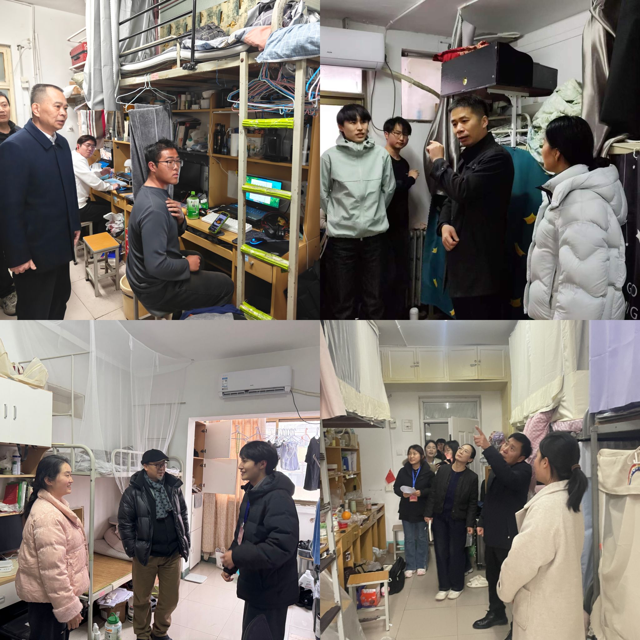 领导班子全体成员及全体辅导员深入学生宿舍,开展全面走访检查。